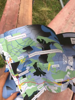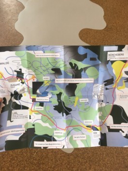 In diesem Projekt mit LandKunstLeben haben wir ein Ausstellungsformat ausprobiert, dass sich in Etappen an verschiedenen Orten abspielt und sich wie Entharsien in verschiedenen Veranstaltungen legt. Die Arbeiten sammel sich am Ende in einem Katalog. Im Kontext von Sink Tank entwickeln Muerbe u. Droege auch die erste situationistische Fahrradkarte für die Gemeinde.